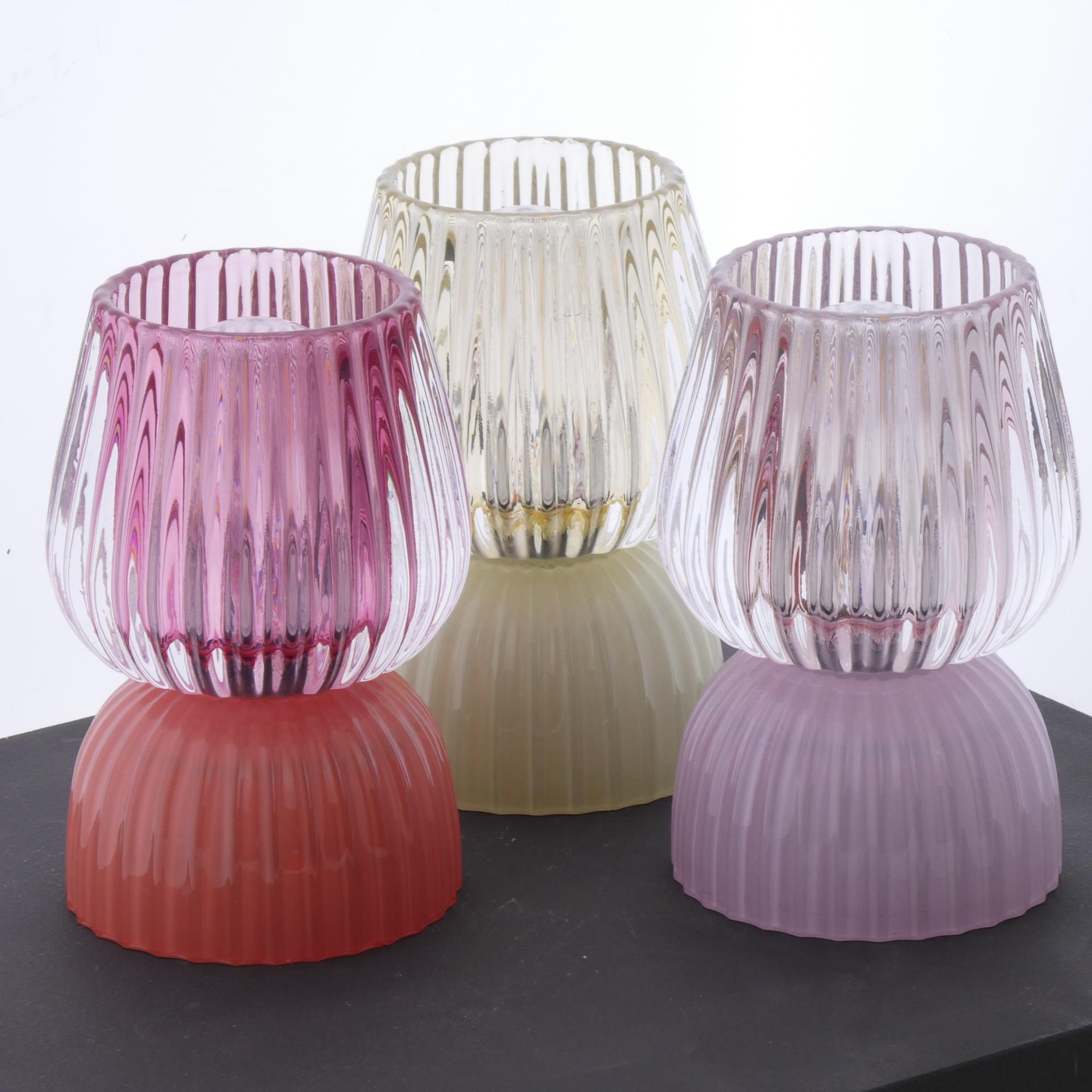 Glazen lampje 12x9cm in geel en roze en rood ass